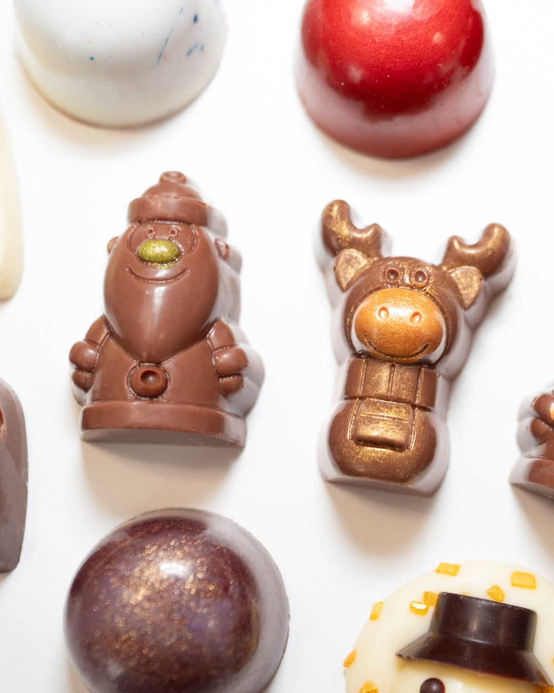 - Features festive shapes and indulgent bonbons filled with caramel and ganache.